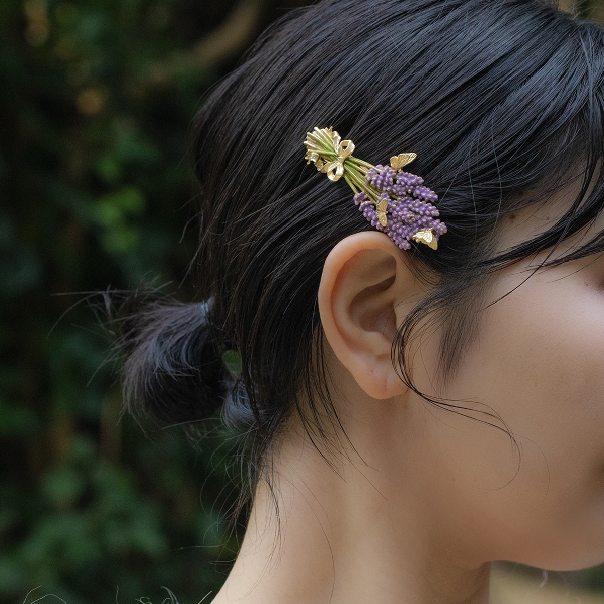 This barrette is inspired by a bouquet of lavender, as if its gentle fragrance might drift through the air at any moment.