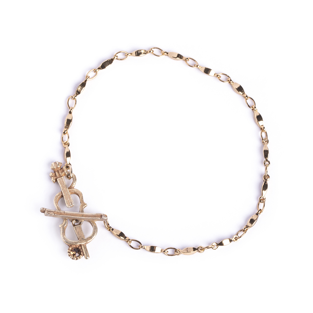 チェロを模ったチャームの中に弓を通して着用すると、チェロを奏でているようなデザインになる可愛らしいユニークなアイテムです。