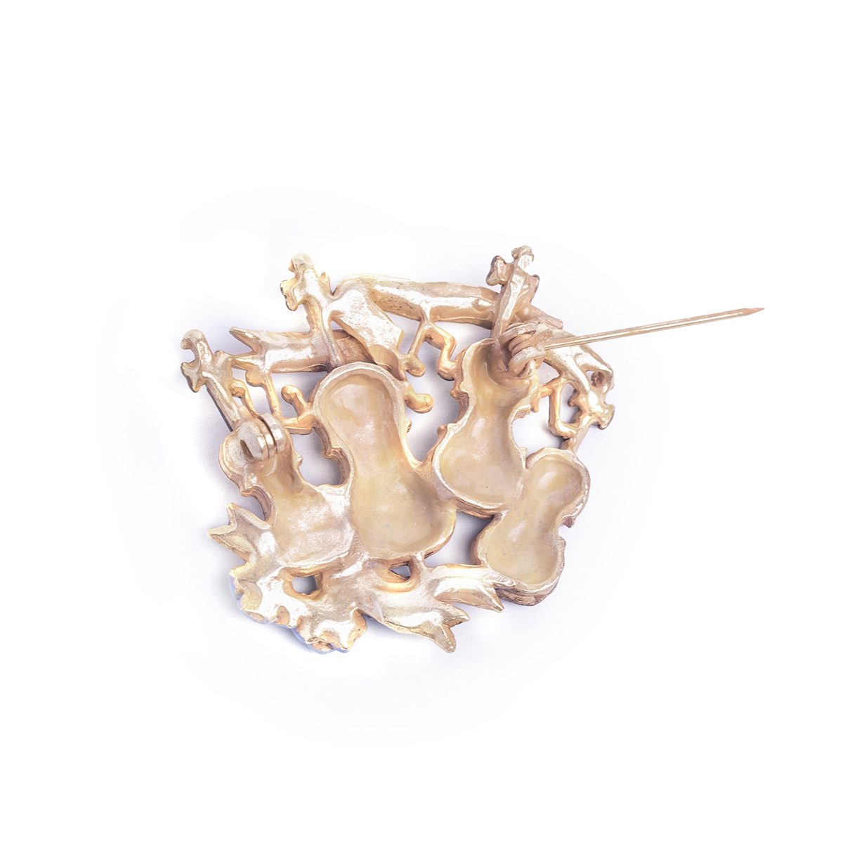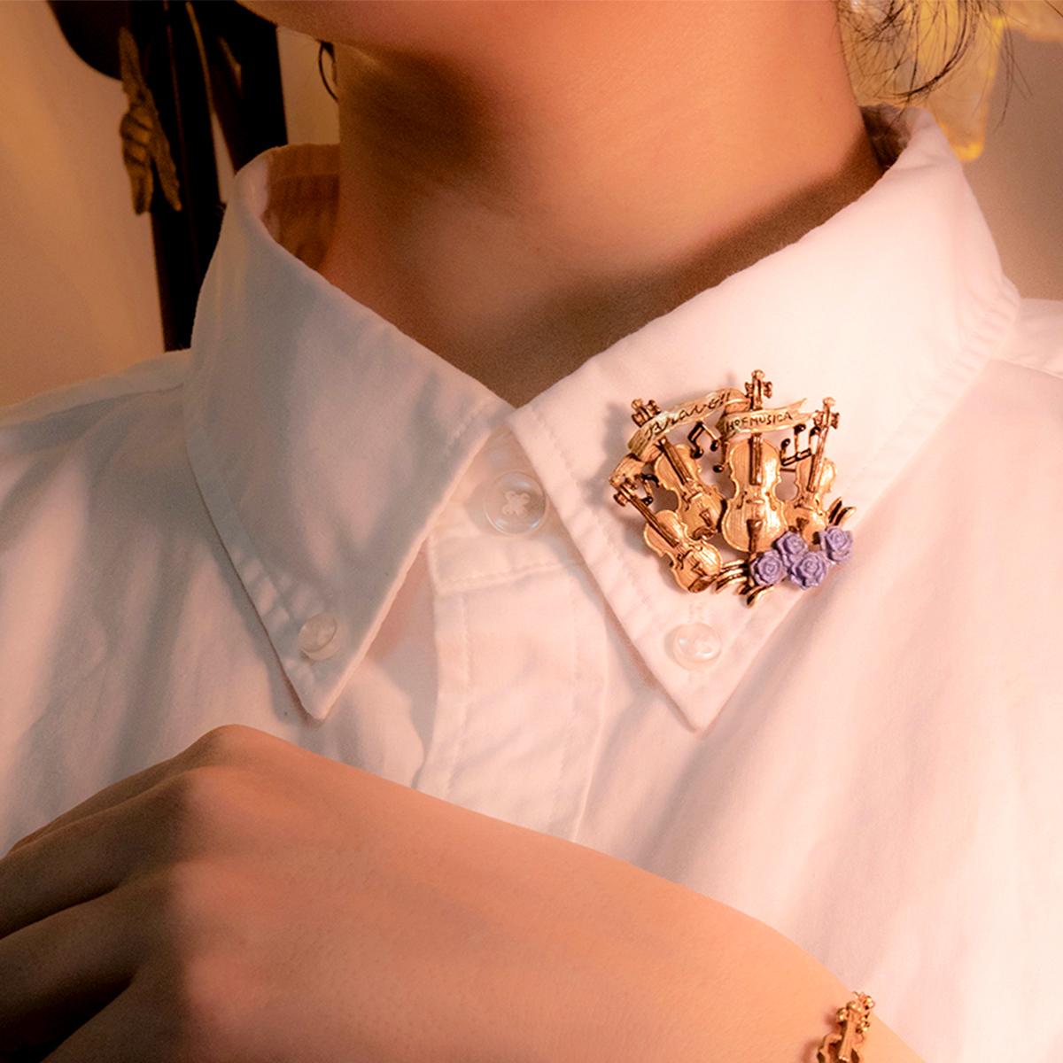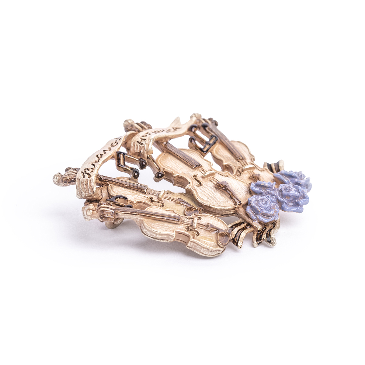 A brooch inspired by the image of a string quartet basking in the applause after a performance.