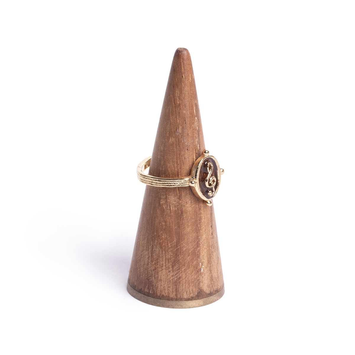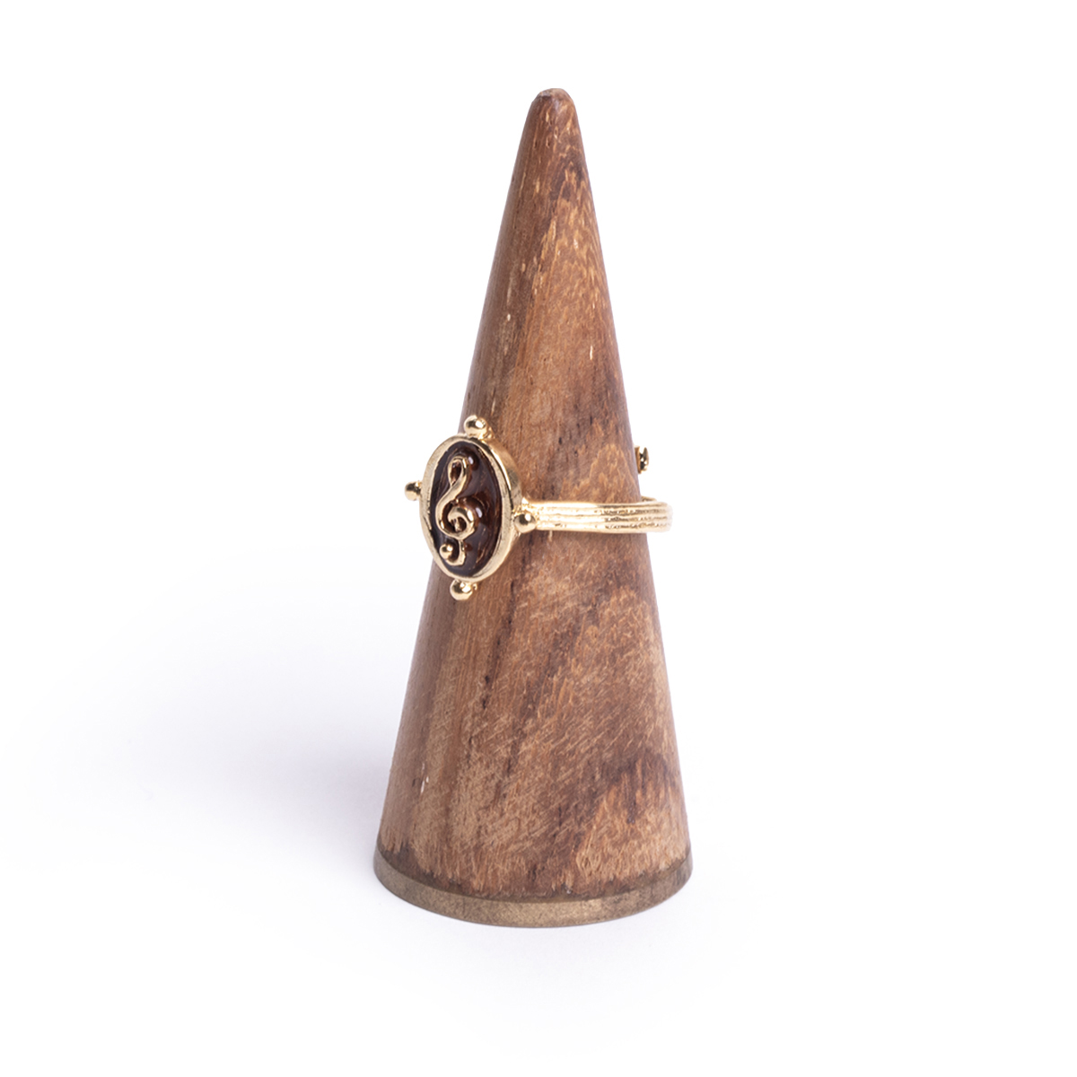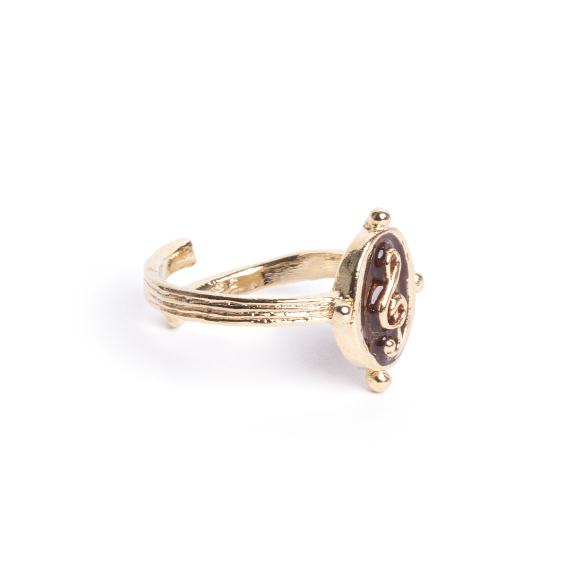 A ring featuring a treble clef within a rounded frame reminiscent of the coda mark.