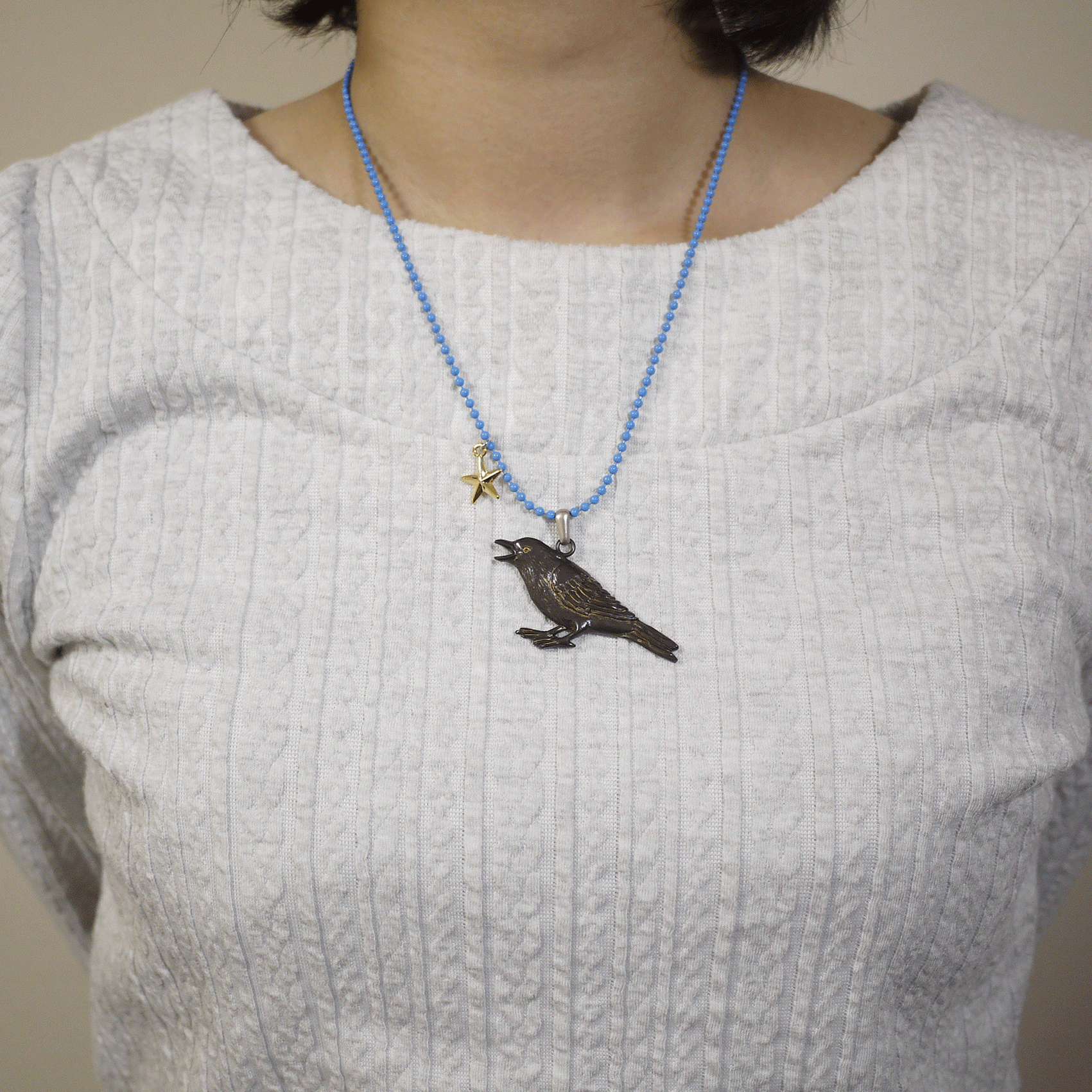 えんぴつでスケッチしていたカラスがそのままアクセサリィに。