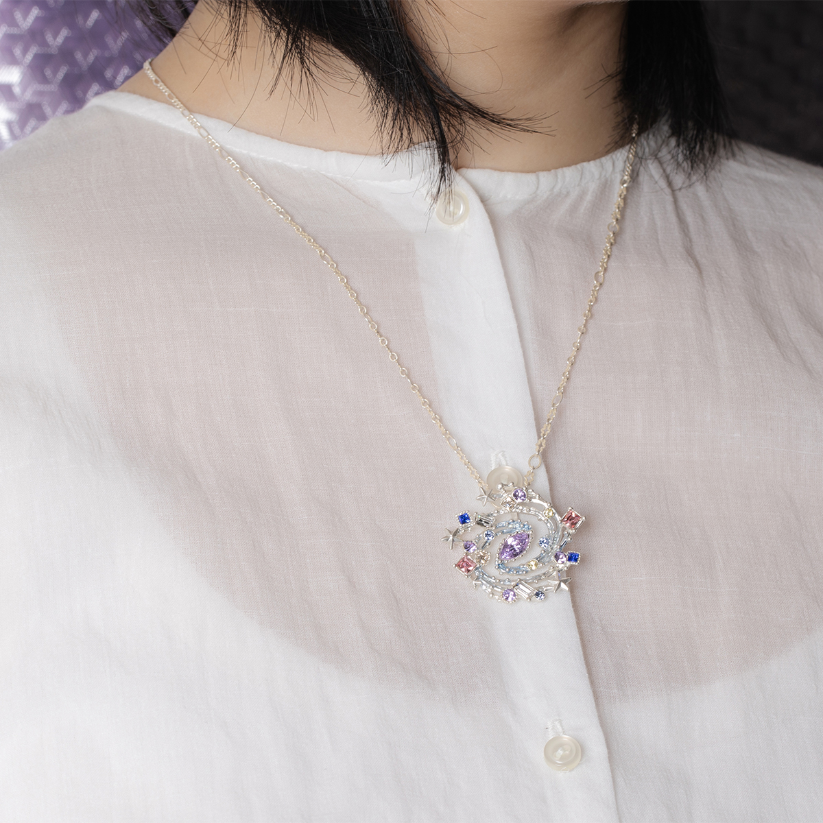 A shimmering galaxy-inspired necklace that captures the vastness of space.