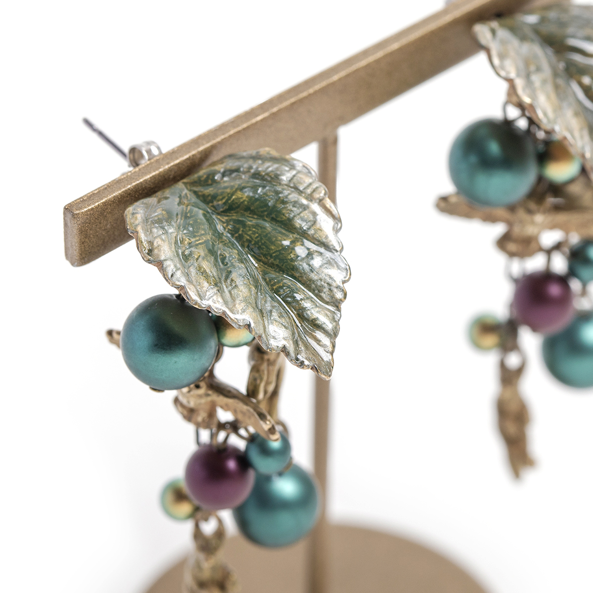 葉の色に合わせてあしわられたマルチカラーのビーズが揺れ、大人っぽい雰囲気を添えています。
