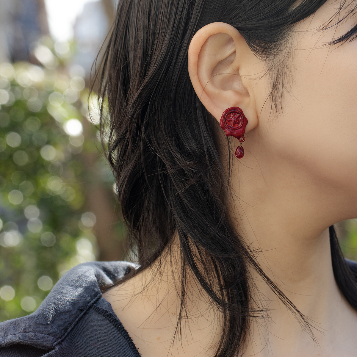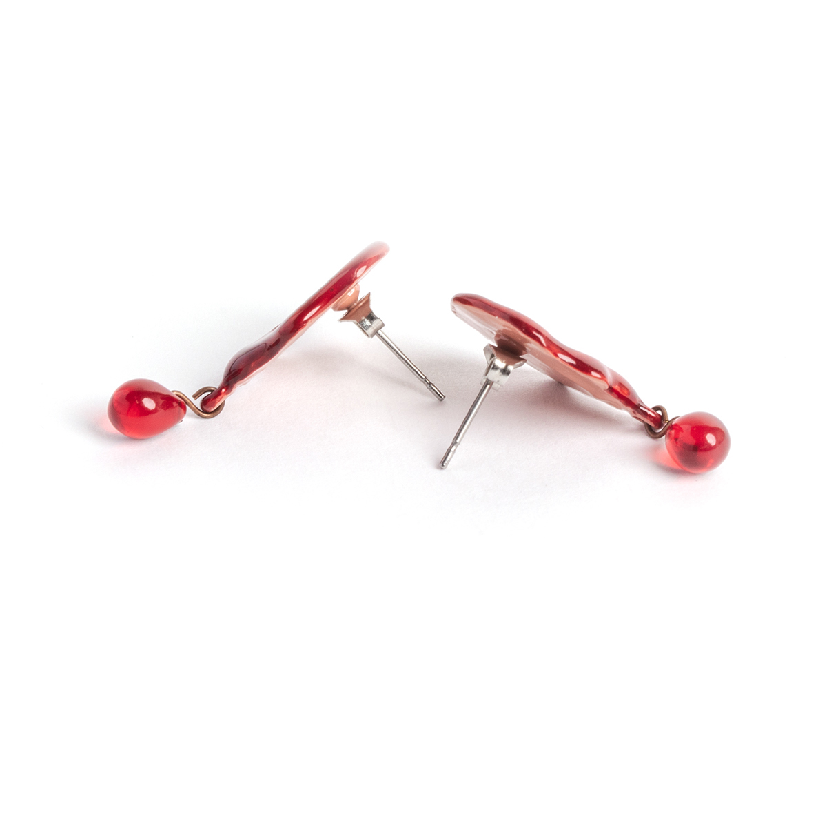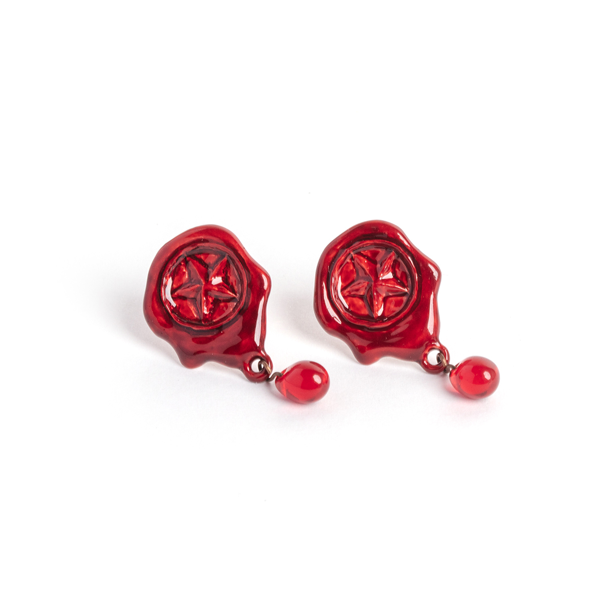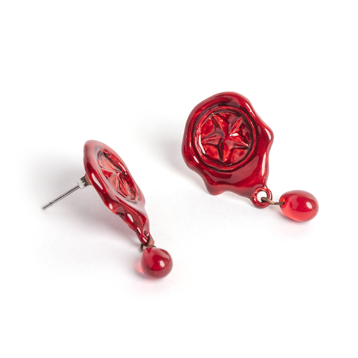 These pierced earrings are inspired by vivid red sealing wax.