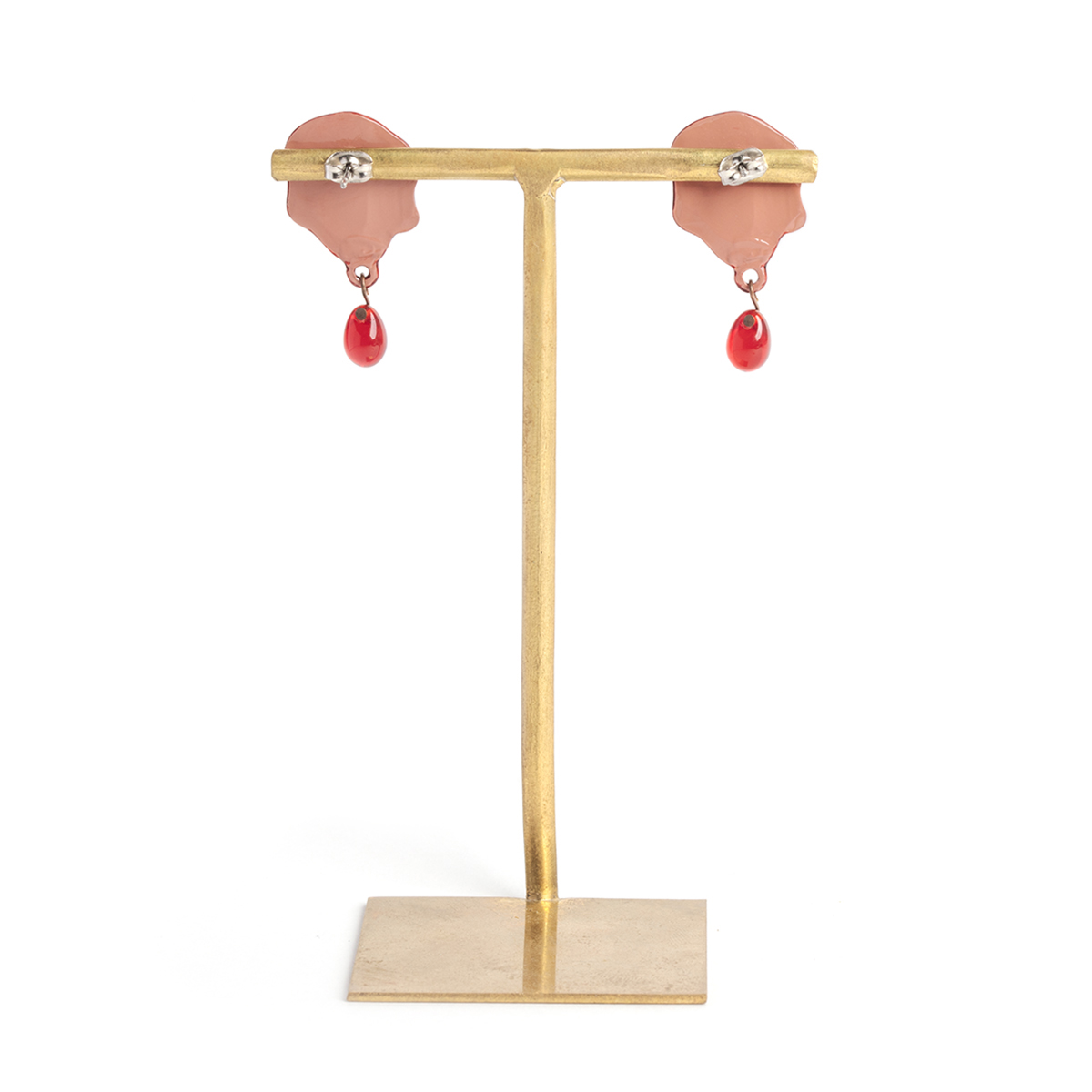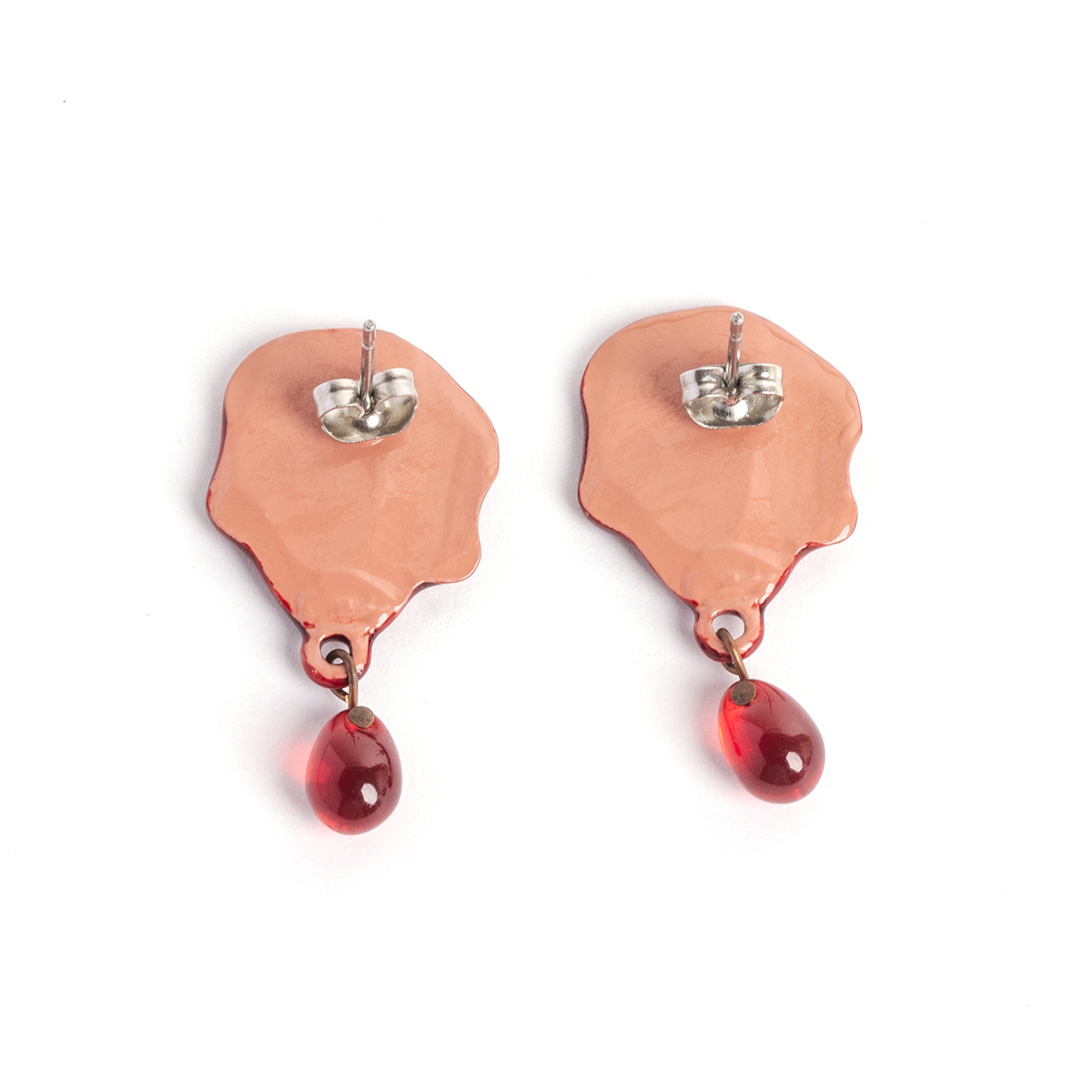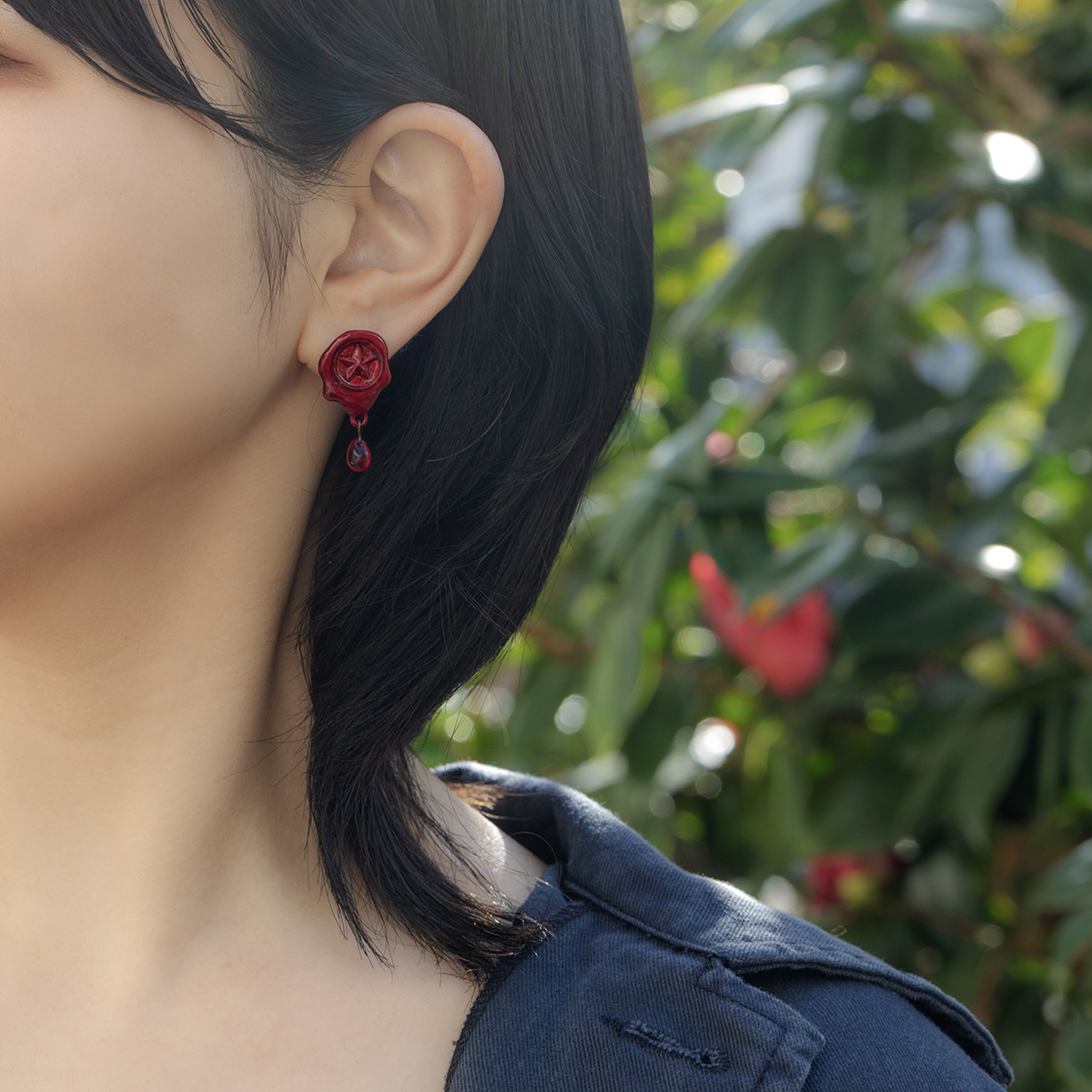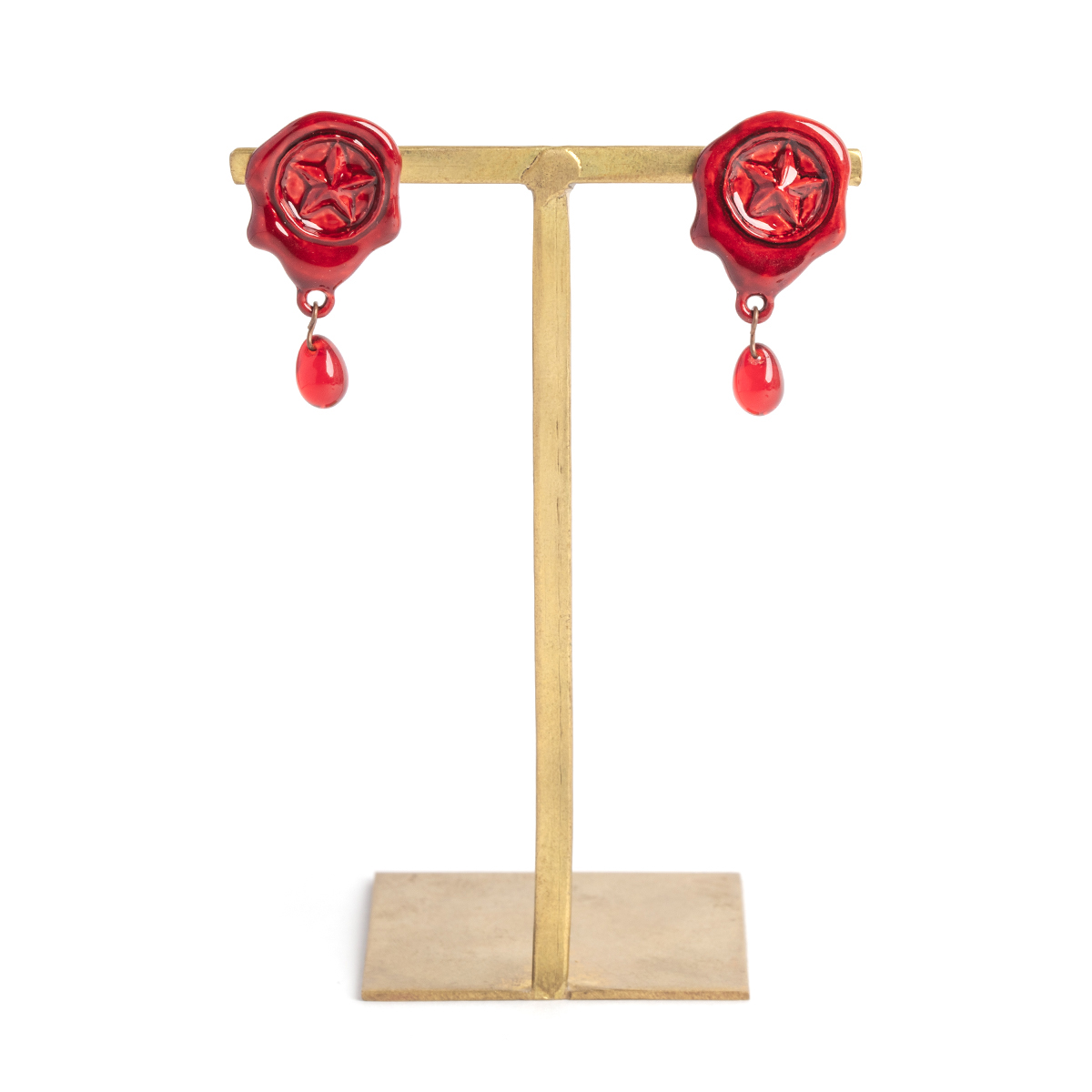 These pierced earrings are inspired by vivid red sealing wax.