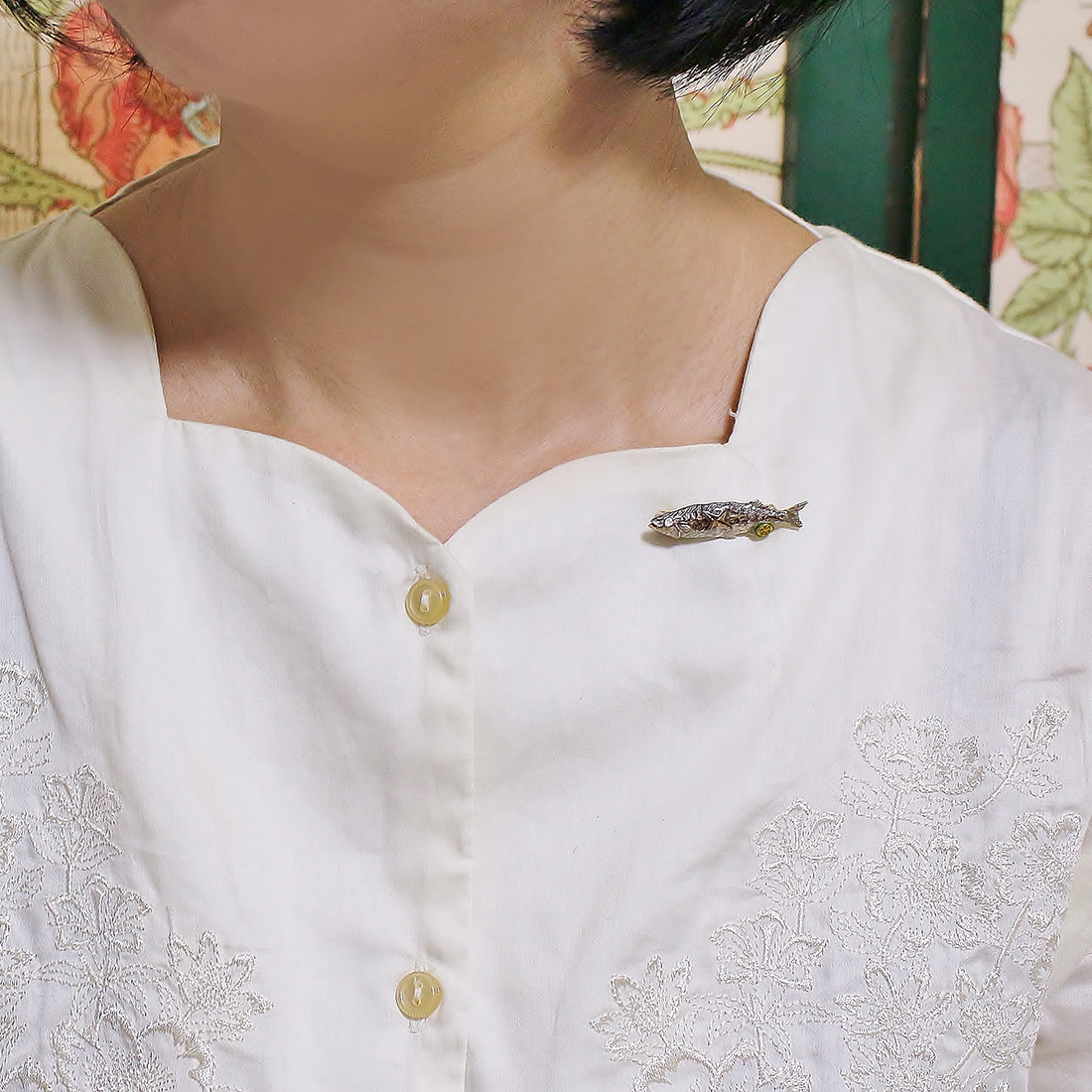 秋になると食べたくなる定番おかず「秋刀魚の塩焼き」がブローチになっちゃった。