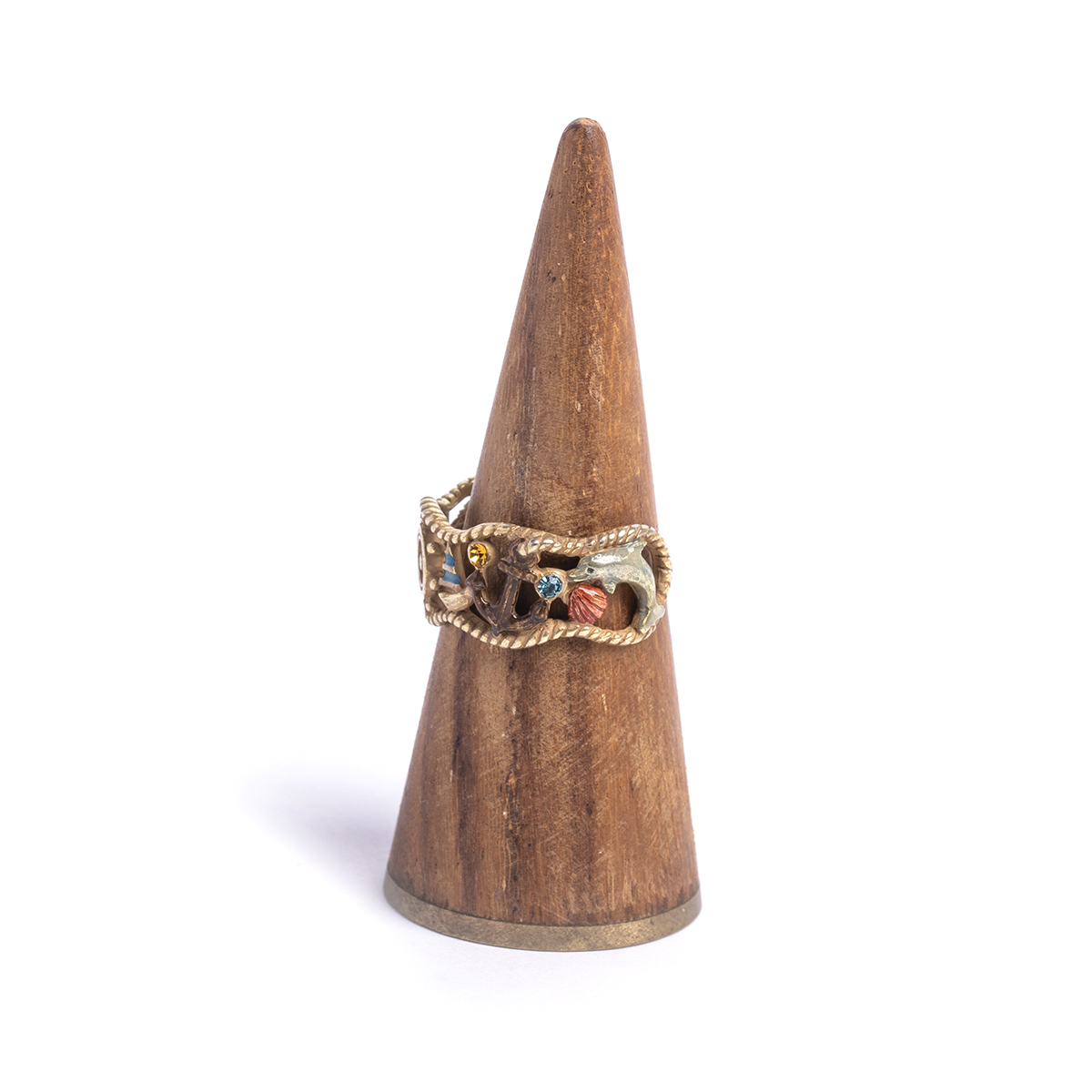 The dusky colors, which give the image of a well-worn nautical chart an antique look, and the motifs arranged as if gradually diving into the sea, are impressive.