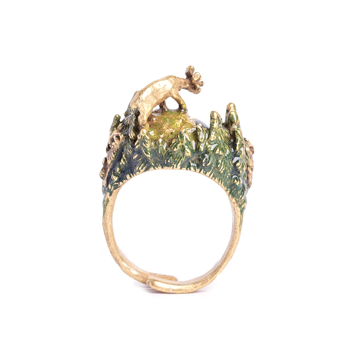 On the side of the ring, a lynx and an owl peek out?making the design enjoyable from every angle.